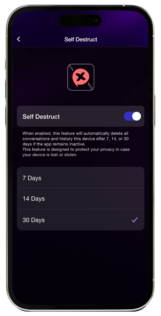 When enabled, this feature will automatically delete all conversations and history this device after 7, 14, or 30 days if the app remains inactive.