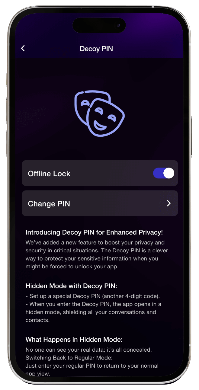 We’ve added a new feature to boost your privacy and security in critical situations. The Decoy PIN is a clever way to protect your sensitive information when you might be forced to unlock your app.